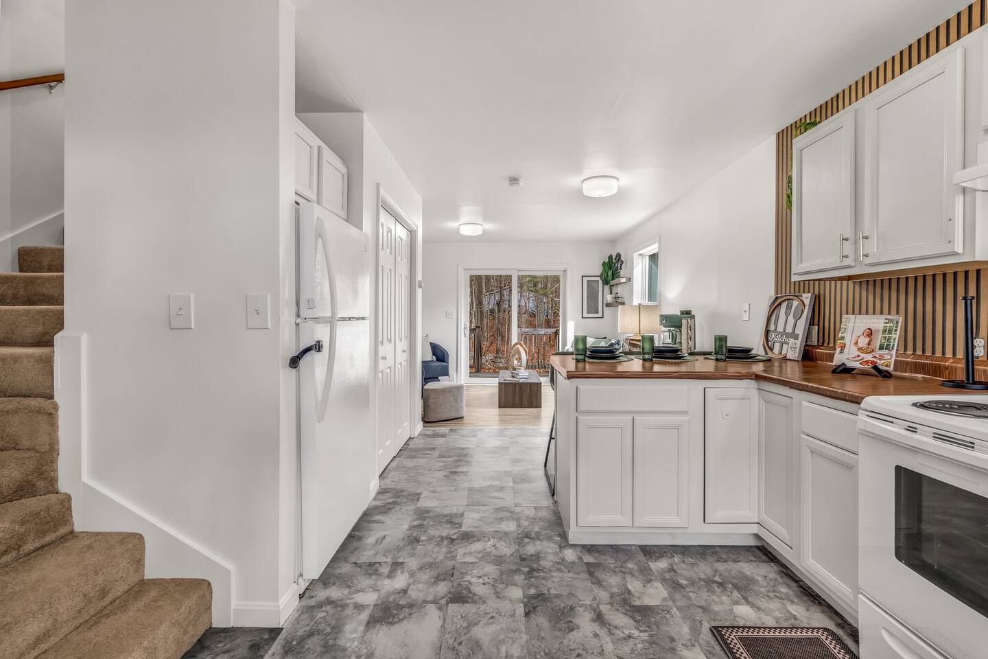 This charming 2-bedroom condo offers the perfect blend of comfort and convenience. Upstairs, both bedrooms feature beautiful second-story views of the surrounding landscape—ideal for watching the sunrise with a cup of coffee or winding down as the evening light fades. Inside, the cozy living space is thoughtfully furnished and fully stocked with everything you need for a relaxed stay, from a complete kitchen setup to soft linens and modern amenities.