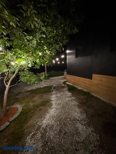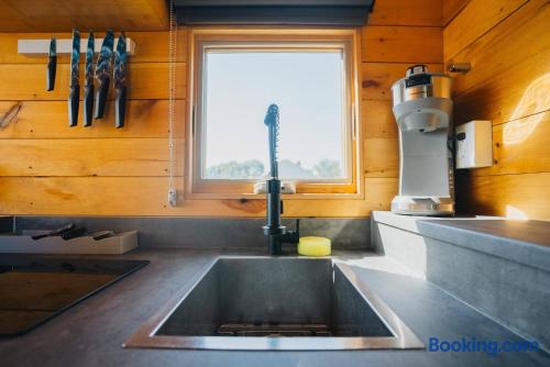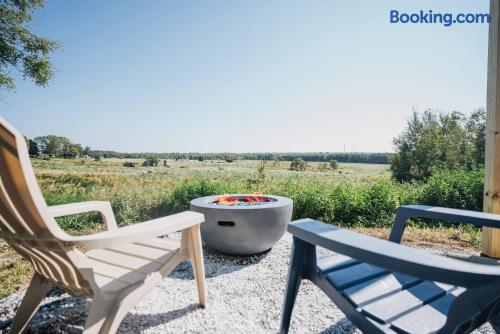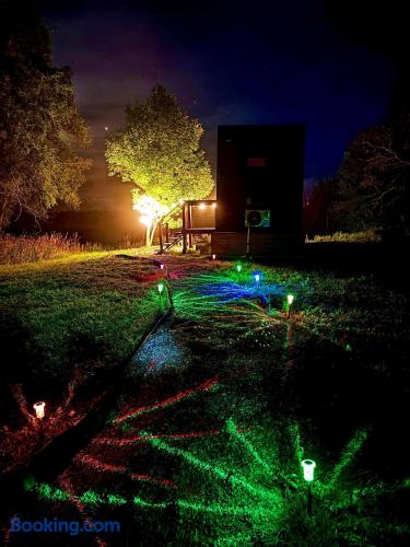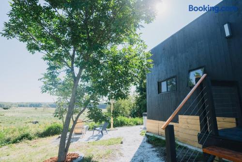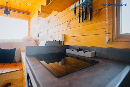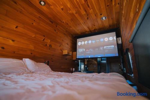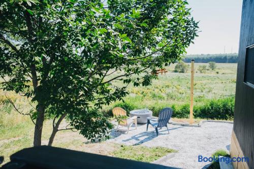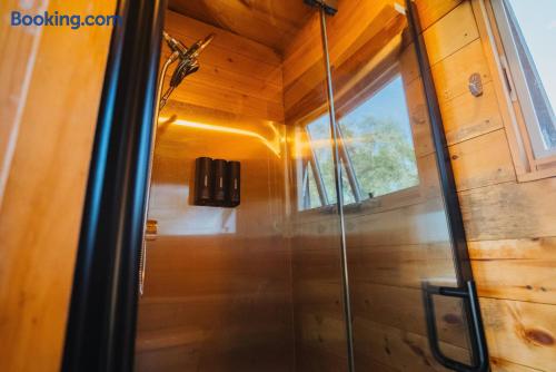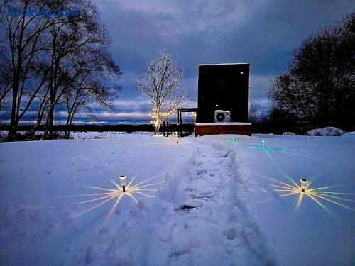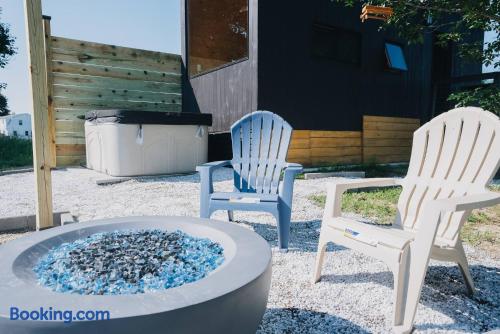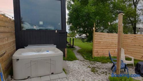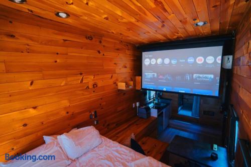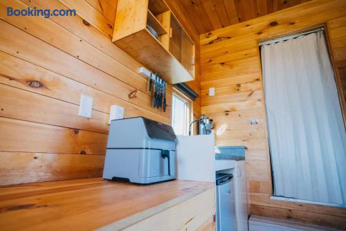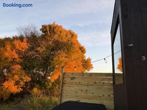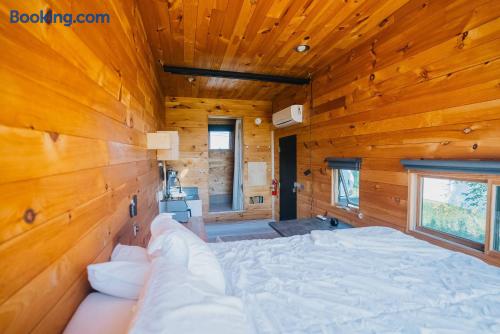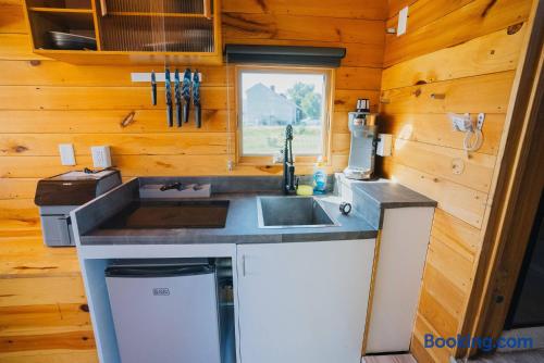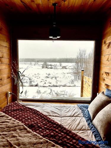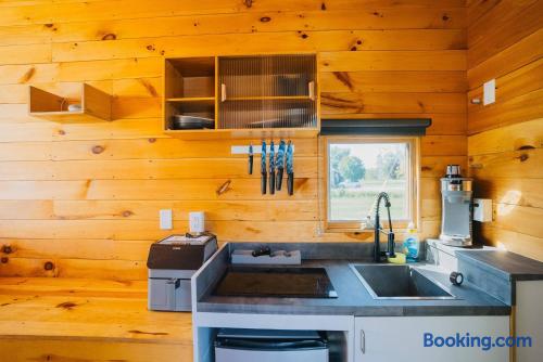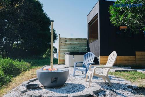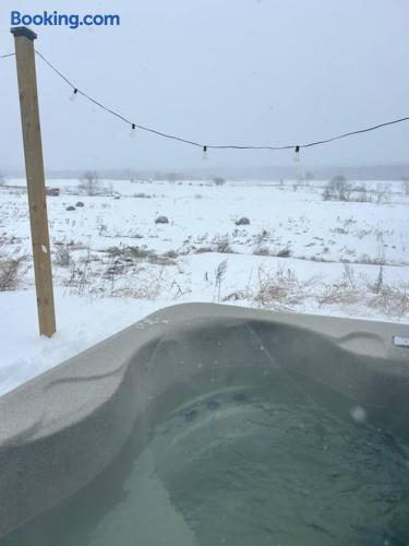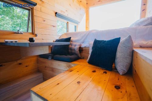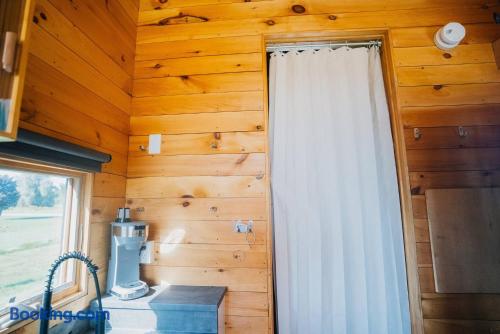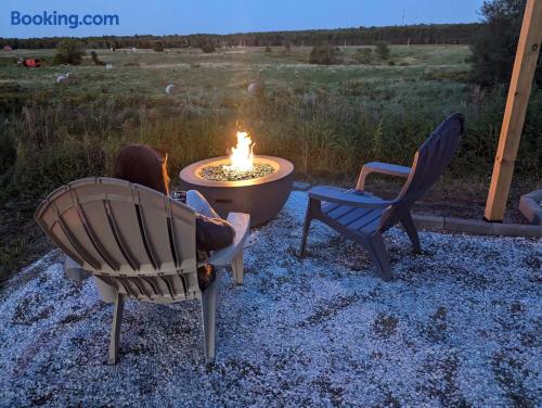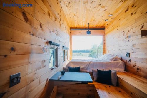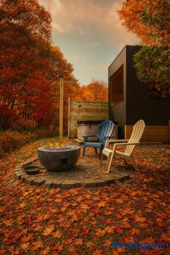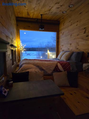 Cozy Tiny Home with Stunning Views Escape the hustle and bustle in this charming tiny home with serene field views. Enjoy the tranquility of nature while still being conveniently located just minutes from Bangor's airport and town center. Relax and unwind in the private Jacuzzi with stunning views of the endless field or gather around the fire pit for a cozy evening under the stars. The projector screen offers endless entertainment options, perfect for movie nights or gaming.