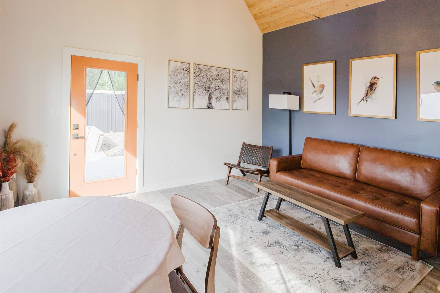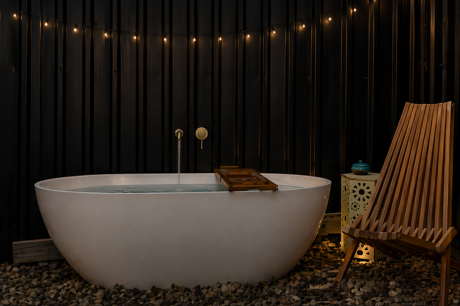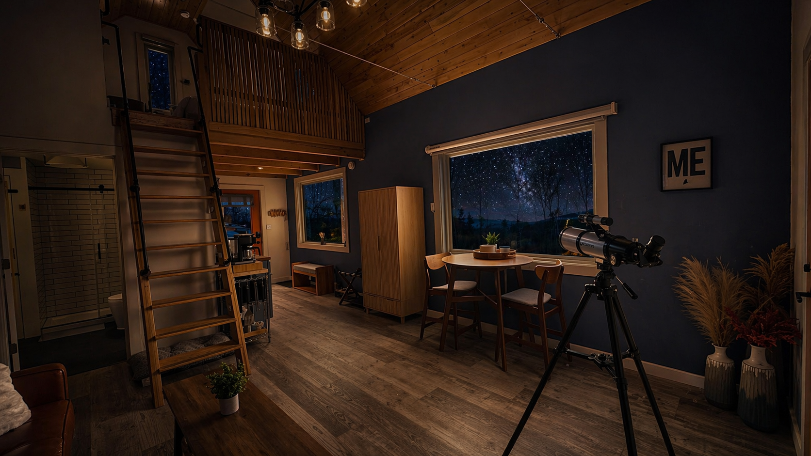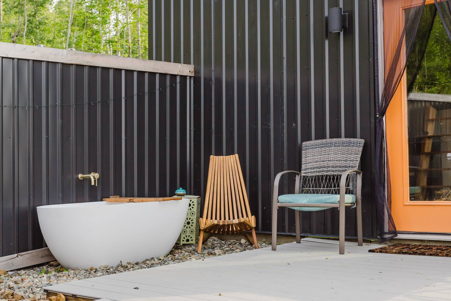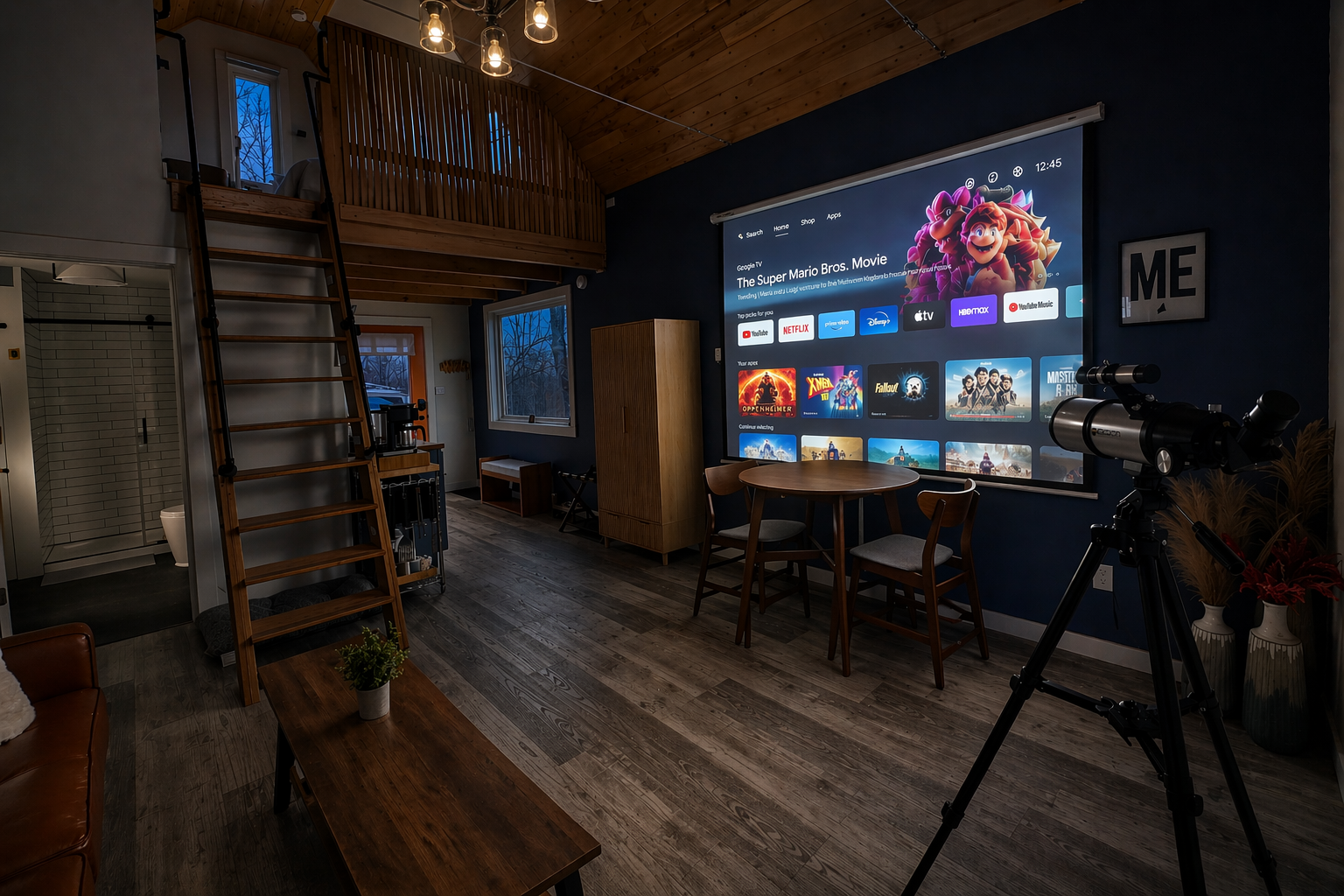 Unwind at this secluded hillside hideaway. Perched above the valley with sweeping ridge views, this newly built cabin blends comfort with privacy. Begin your day soaking in the outdoor tub as morning mist drifts up from the valley below, or gather around the granite fire pit in the evening while grilling under the open sky. Designed with sustainability in mind, the retreat runs on solar power backed by a quiet propane generator to ensure a worry-free stay even on cloudy days.