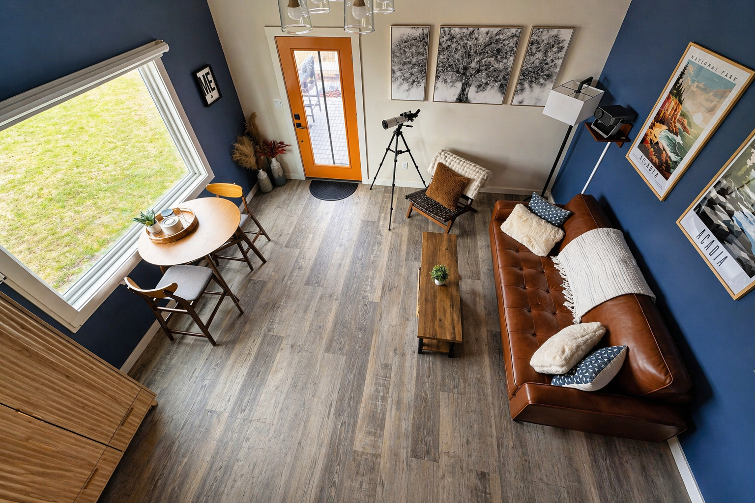 Tucked away in the hills of Midcoast Maine, the cabin is an ideal getaway. Located 15 minutes from St. George Lake. For those looking for day trips there are plenty of choices ! 30-45 minutes to the coastal towns of Belfast, Camden and Rockland, 40 minutes to Augusta, one hour 10 minutes to Bangor, one hour 40 minutes to Acadia and two hours to Bar Harbor. Crie Hill Cabin was built to feel spacious while occupying a small footprint. The cathedral ceilings double the volume of this refuge from the hustle and bustle of life. Large windows in the kitchen, living room, and the cozy loft bedroom offer views across the valley. The property is completely off-grid. Power is generated by six 375 watt solar panels and stored in a 7.5kwh battery, which is plenty for a couple days of usage if the sun isn't out. For extended cloudy periods there is a standby generator which will automatically recharge the battery in a short period. To conserve electricity, you will notice the water supply pressure will drop every few gallons because the well pump is a “slow start” model. The road coming up to the house, is a rocky dirt road, with a slight incline and it can be a little rough in spots. It’s totally drivable, but you’ll want to take it slow on the way up. SUV’s are recommended but not necessary. Once you’ve made it to the cabin, you’ll see why it’s worth the climb ! Embrace the rural charm ! Being in the woods means sharing our home with the local ecosystem; you might see the occasional ant or other small insect make its way inside. We do our best to keep the little critters outside. We kindly ask guests to be mindful of leaving food out and doors closed. Internet is provided through a 5G home internet service. The patio/deck area has a sunken granite fire pit (firestarters & firewood provided) which has surround seating perfect for watching the sunset over the mountains or stargaze with the provided telescope. For groceries, Tobey’s is 10 minutes away and Hannaford is 15 minutes away both in the town of China. Circle K gas (24hrs), John’s Ice Cream Factory & Lori’s Cafe are all in the same spot about 8 minutes away. Hi
