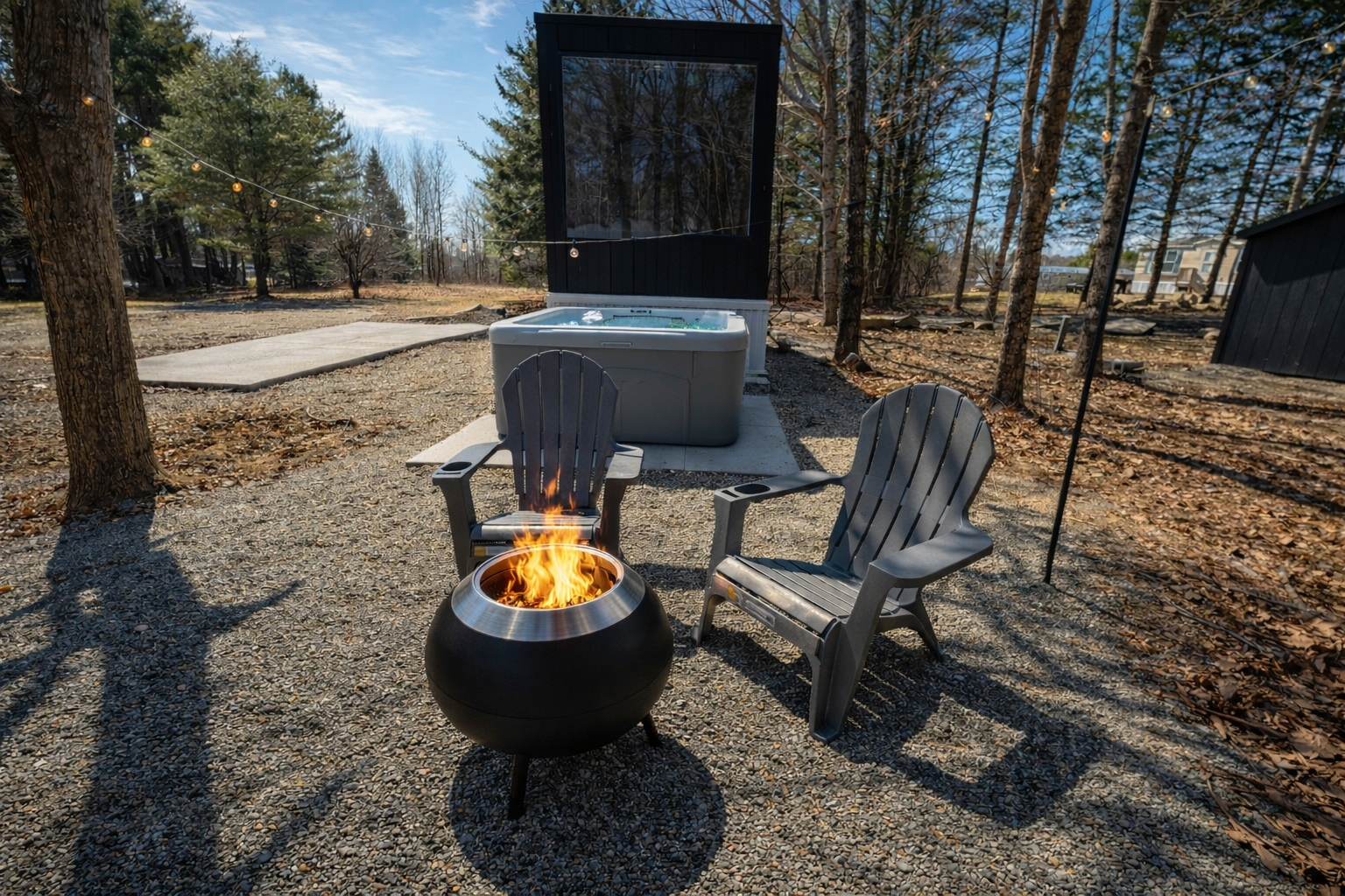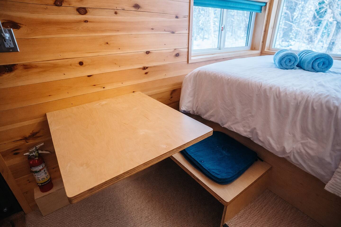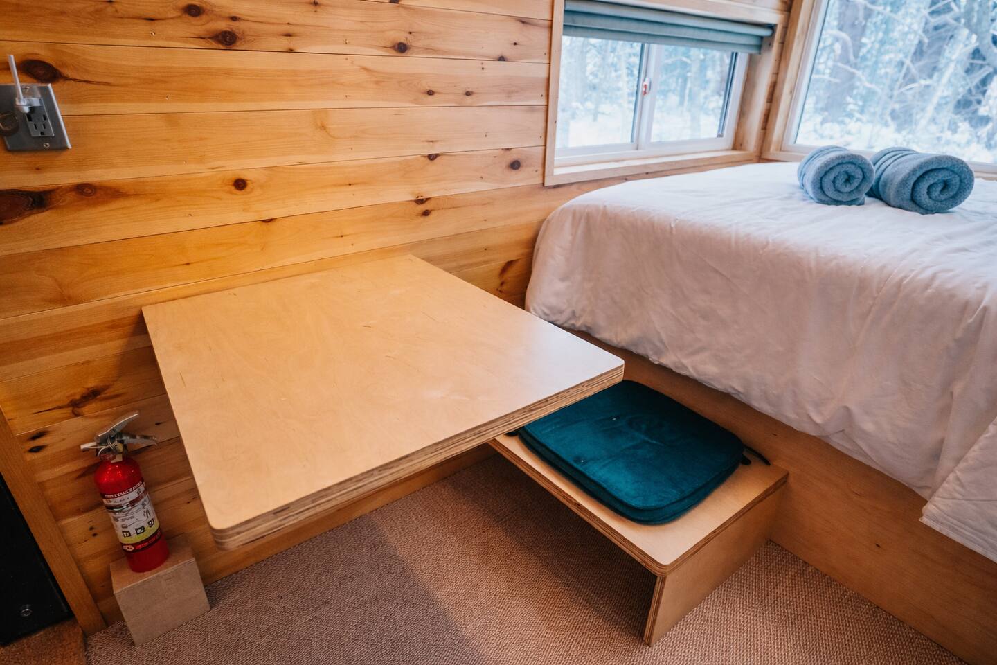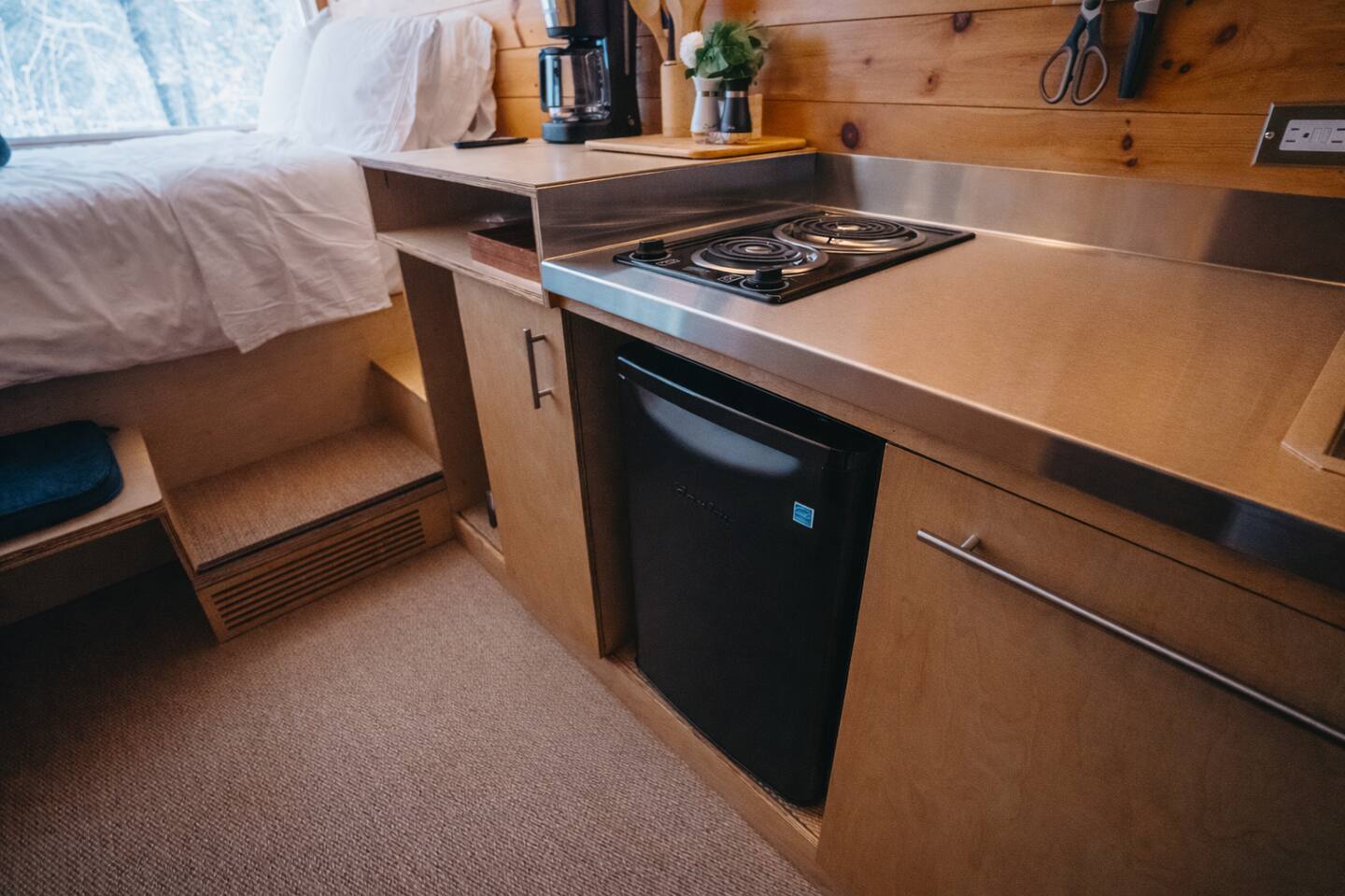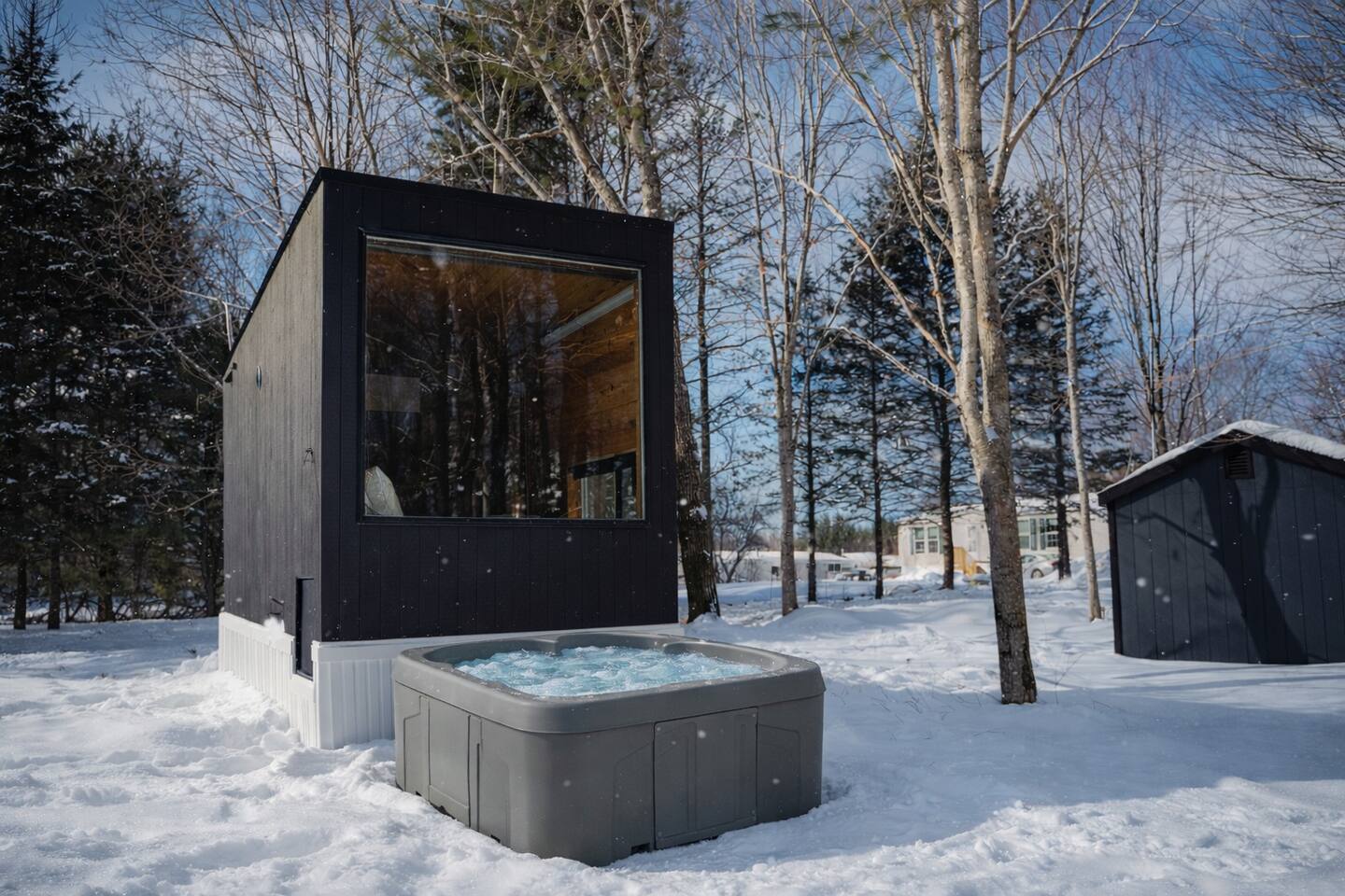 Enjoy Timberlight Retreat, a tiny home with a queen bed, fully equipped kitchen, spa-style shower, and built-in projector with Google TV. Look out from your large picture window with forest views. Relax in your private outdoor hot tub, unwind in the quiet woods, and take advantage of easy access to trails, lakes, and local dining. Ideal for couples, weekend getaways, or a nature escape.